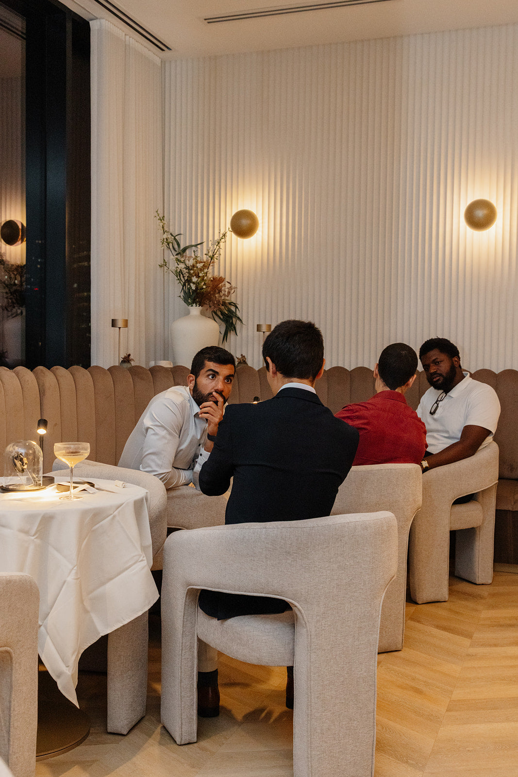 The experience is structured around thematic tables, each inspired by a DEMONT creation. Every table offers a new lens: for example, the Meet in the Middle table invites you to explore the night’s central question through the perspective of love, compromise, and connection.